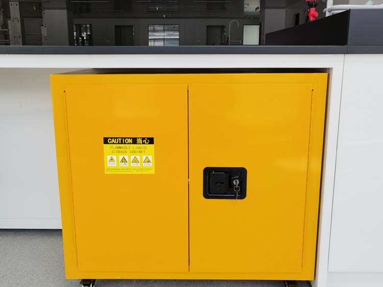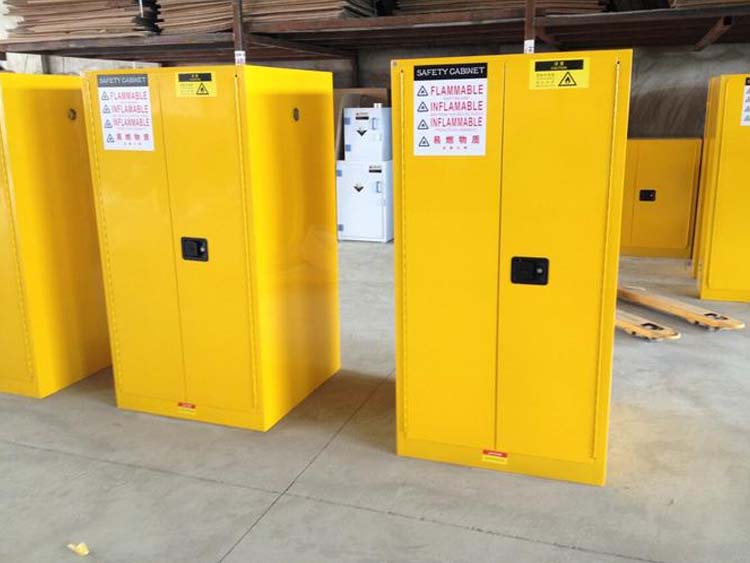 2.三點聯(lián)動式門鎖,輕松自如啟閉,柜門配有雙鑰匙,5cm高的防漏液槽使意外流出的液體不外溢。裝設有防閉火裝置的雙透氣孔,獨有的防溢漏式層板可在每層擋上下之間自由調節(jié)。嚴格按照OSHA規(guī)范,粔身設有靜電接地傳導端口,方便連接靜電接地導線.柜子內外噴涂有持久的、不含鉛環(huán)氧樹脂漆,防止化侵蝕.